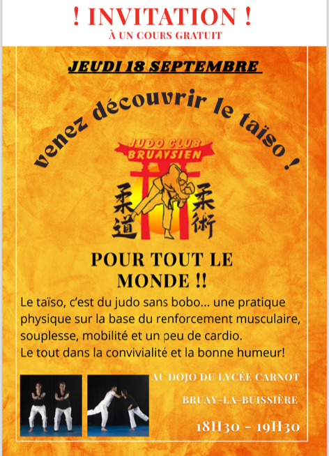 PORTES OUVERTES au TAISO ce jeudi 18 septembre au dojo du lycée CANOT de 18h30 à 19h30