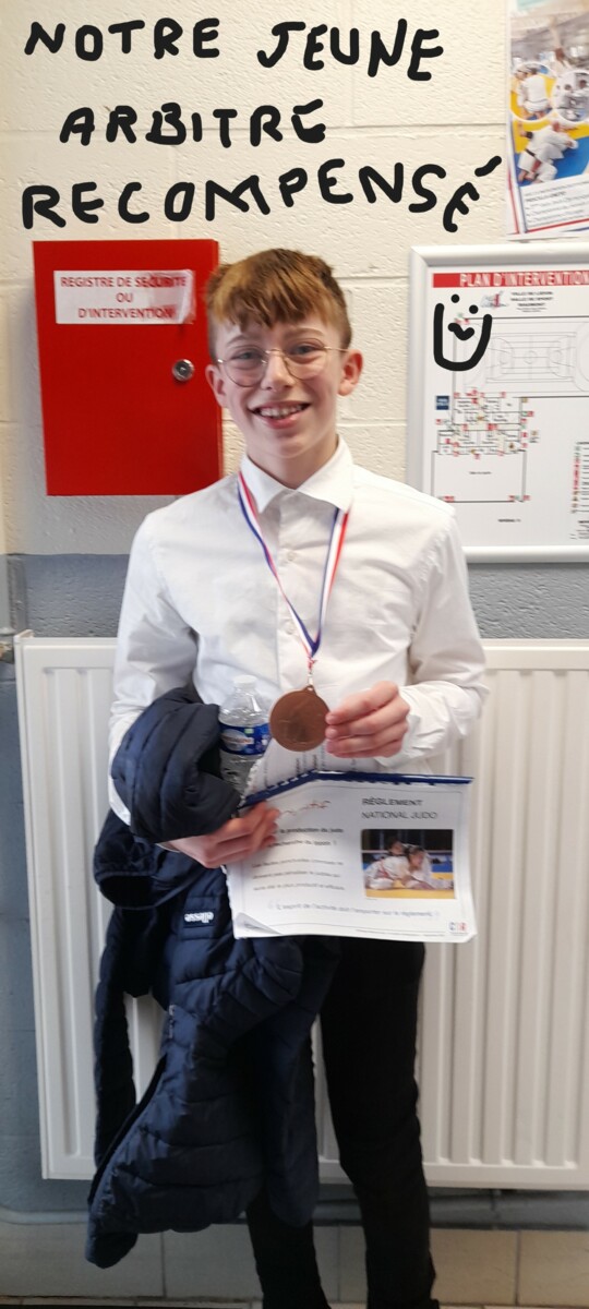 Toutcela se passait l'après midi, mais dés le matin le club était présent sur les tatami. Arthur qui a débuté sa vie d'arbitre a officié toute la matinée. Et il s'est bien débrouillé puisqu'il finit médaillé et arbitrera lors des finales régionales benjamins. Bravo